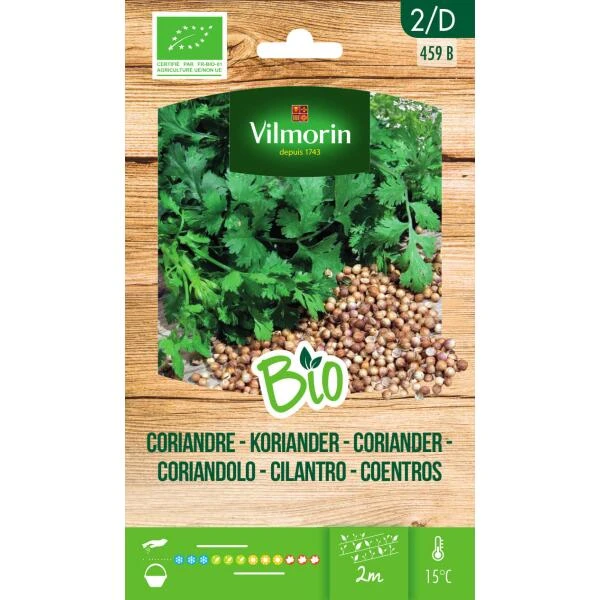 Koriander BIO van Vilmorin is een keukenkruid waarvan zowel de bladeren als de zaden gebruikt worden. Eén verpakking is goed voor bijna 2 lopende meter.
