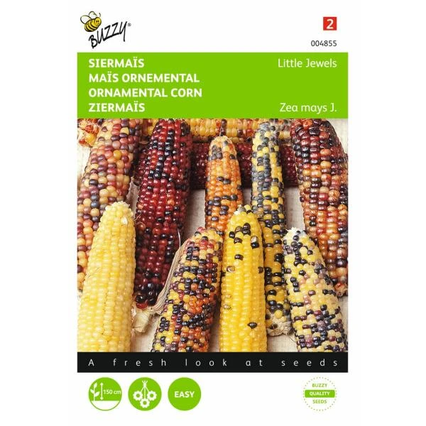 Dit zadenmengstel bevat een kleurrijk mengsel van grootkolvige siermaïs. Zo kleuren de rijpe kolven naar allerlei mooie kleurtinten zoals rood, roze, oranje en vele tussentinten.
