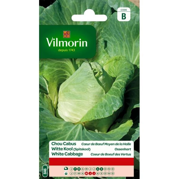Deze sterke variëteit Spitskool Ossenhart vormt grote en vaste kroppen. Zeer geschikt voor teelt tijdens de lente en de zomer. Witte kool is zeer rijk aan vitamine C en bevat eveneens mineralen zoals magnesium, kalium en calcium.
