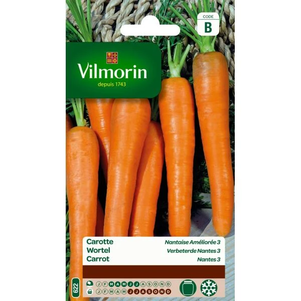 Traditionele halflange en cylindrische wortel Nantes 3 met een goede kwaliteit. Rijk aan minerale zouten. De oranje kleur is afkomstig van caroteen dat zorgt voor de aanbreng in ons lichaam van provitamine A.